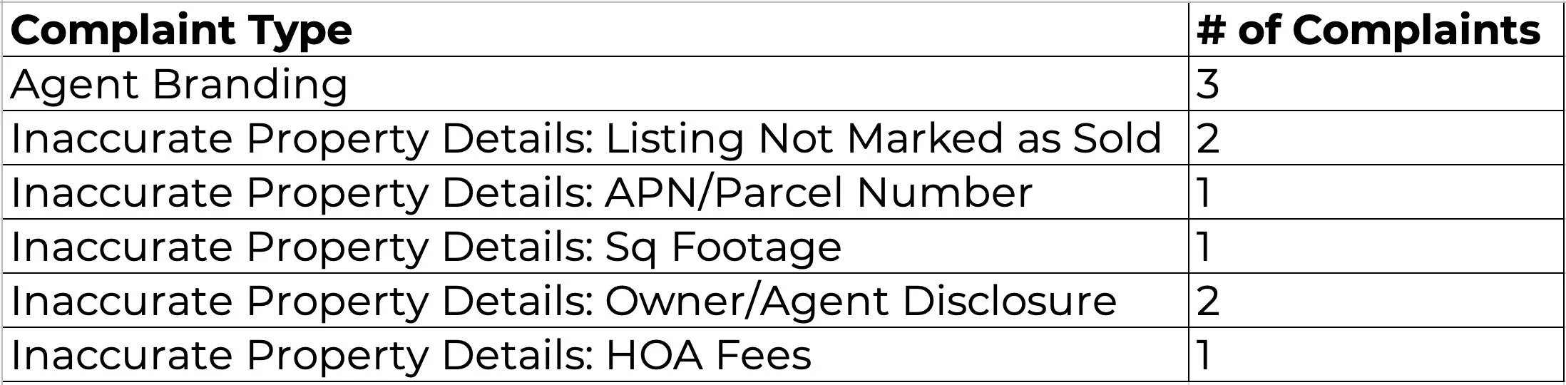 MLS Complaint Summary